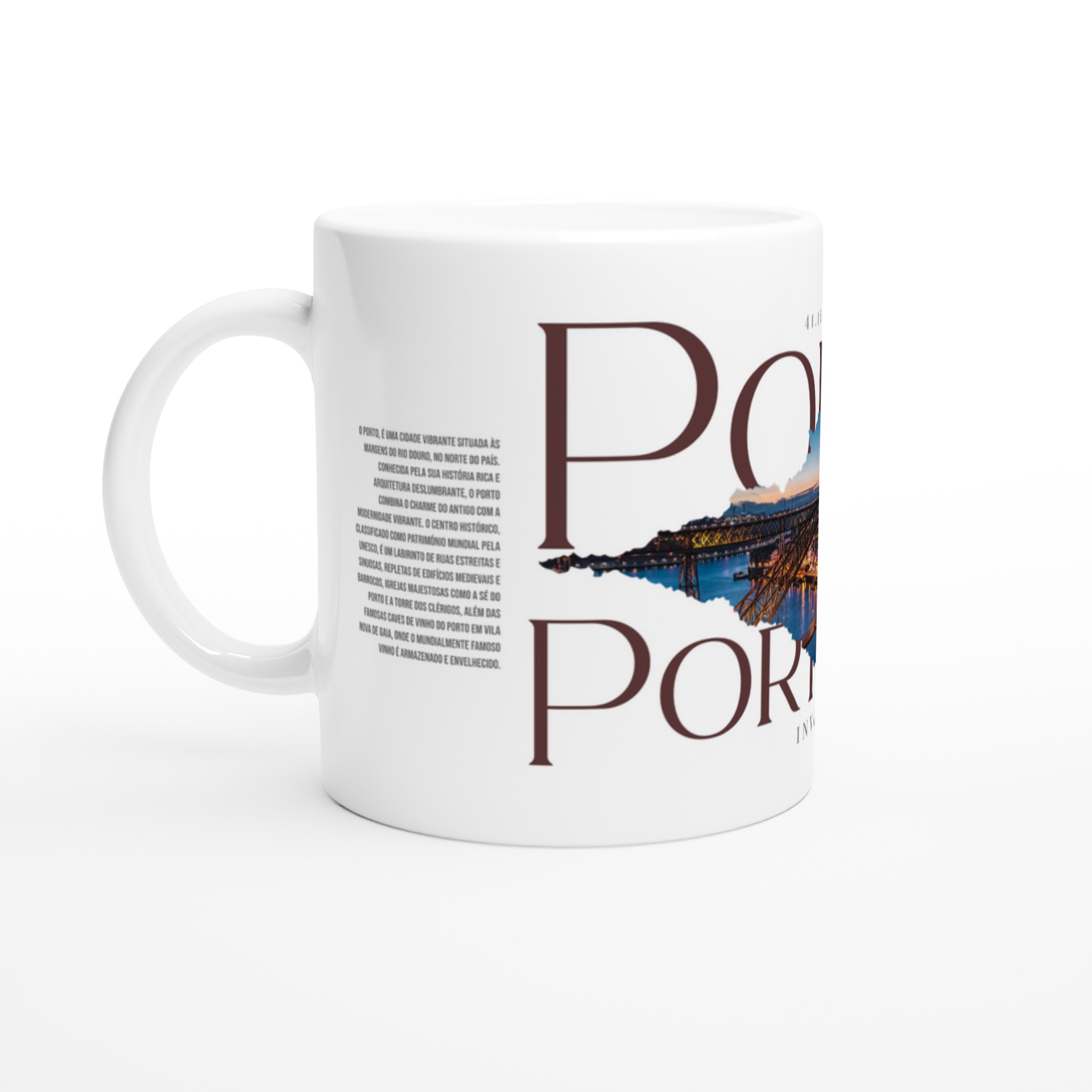 Transport yourself to the picturesque streets of Porto with our cityscape mug, adorned with stunning imagery and captivating texts that celebrate the rich history and vibrant culture of this Portuguese gem. Savor every sip as you immerse yourself in the beauty of Porto.