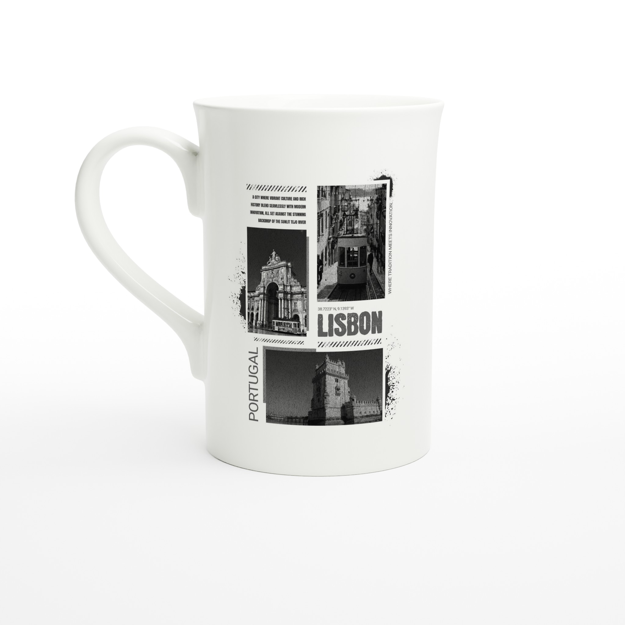 Sip in style with our Vintage Lisbon Portugal Porcelain Slim Mug. This 10oz white porcelain mug features a captivating black and white cityscape design, merging practicality with Portuguese charm. Perfect for a cozy coffee break, it adds a touch of Lisbon’s allure to your daily routine!
